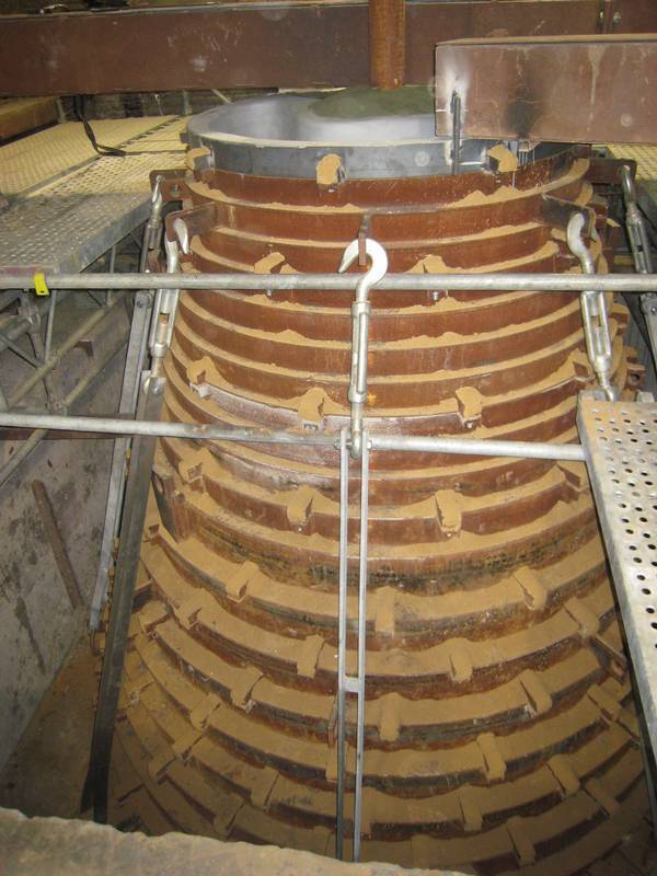 De gietvorm. Ze lijkt minder hoog dan ze in werkelijkheid is, omdat ze gedeeltelijk in een put zit.