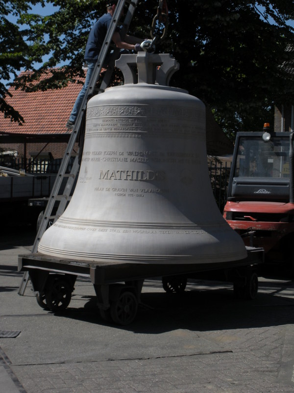 De Mathildisklok. Ze blinkt nog niet, want ze moet nog gepolijst worden en een laagje vernis krijgen.