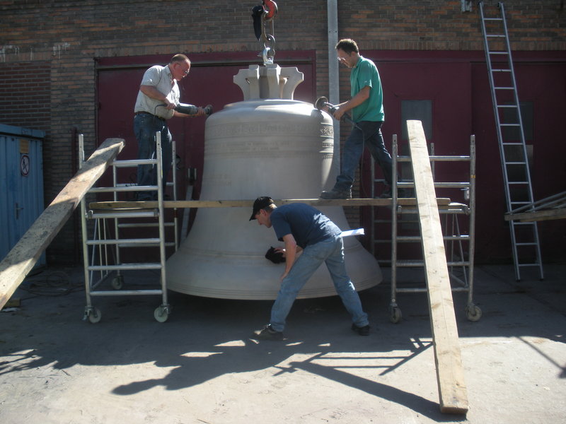 De klok wordt aan het draaien gebracht, terwijl ze gepolijst wordt.