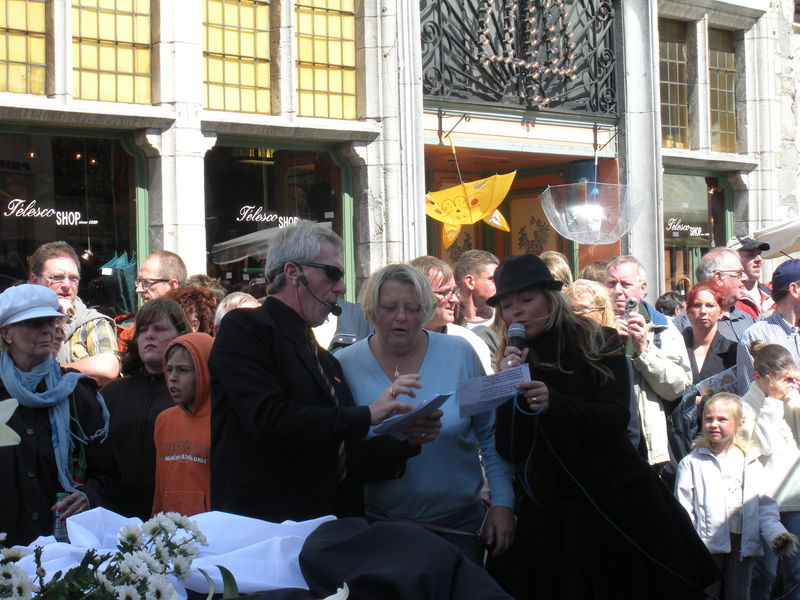 Aan de Groentemarkt laat Gus Roan iemand uit het publiek het Mathildislied meezingen.
